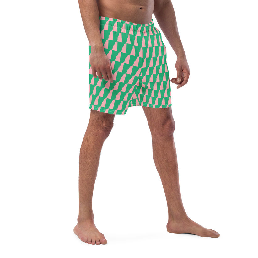 Abstract green shape light pink men's swim trunks