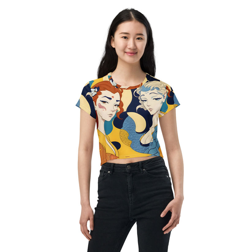 Looking for you next wardrobe favorite? Well, look no further because this crop tee is printed and sewn to fit you just right. To top that off, the original all-over design is definitely worth showing off, so don't hesitate to own one of these tees - they're meant to be adored.