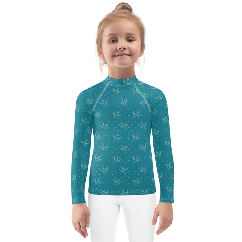 Protect the little ones from the elements with this colorful kids rash guard. Its sun-protective fabric and long body and sleeves make it perfect for running around on the beach, or just being active indoors.