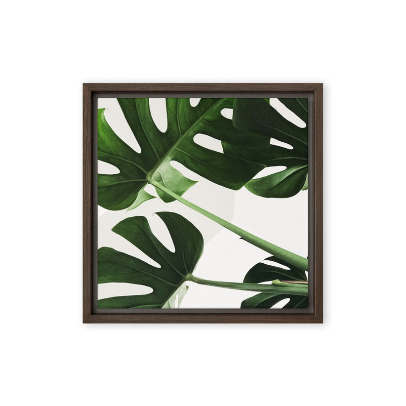 - The framed canvases with brown and black frames have a black inside around the canvas, and the canvases with white frames have a white inside around the canvas.