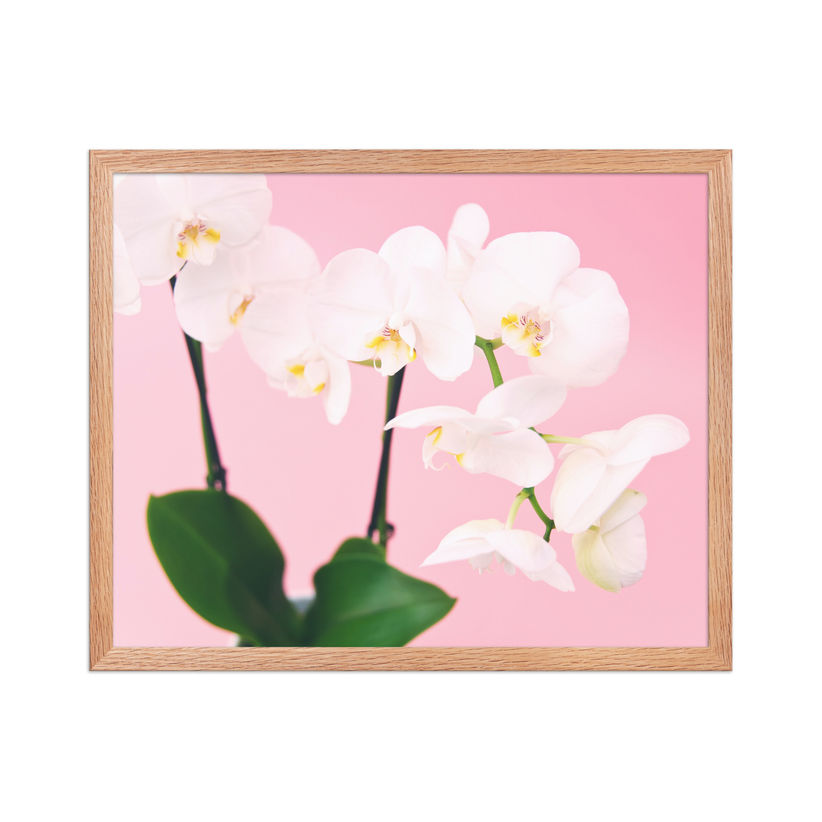 Pink flower enhanced matte paper framed poster