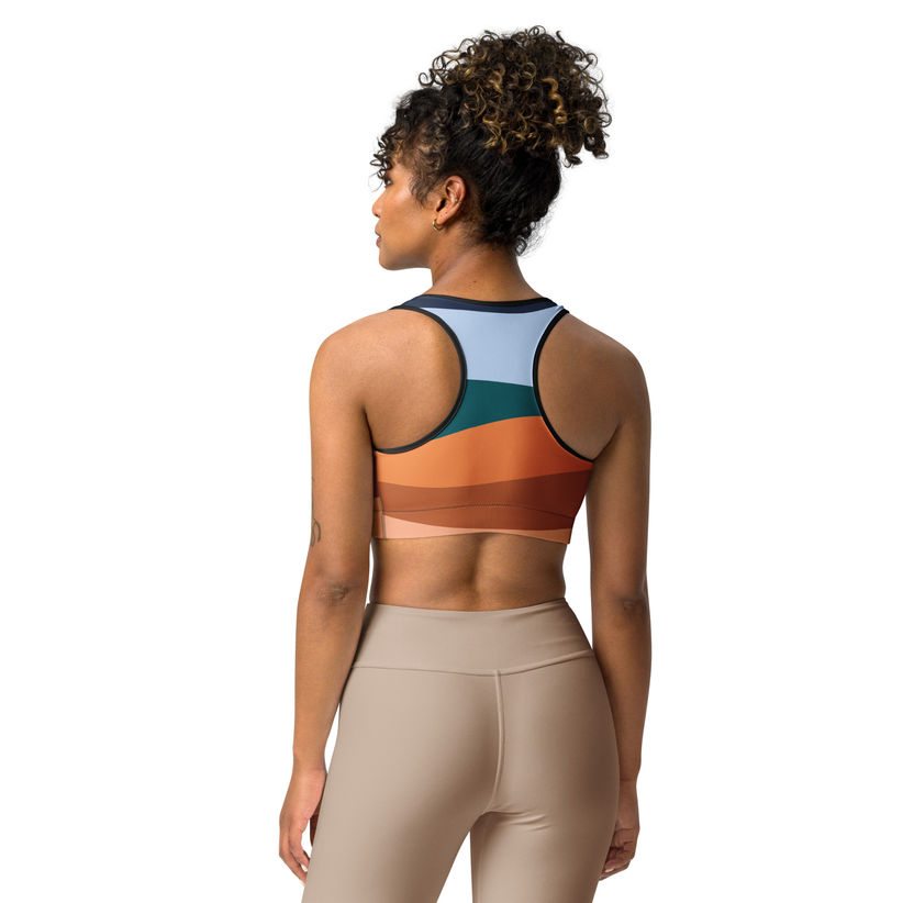 This gorgeous sports bra is made from moisture-wicking material that stays dry during low and medium intensity workouts. The bra has support material in the shoulder straps, double layer front, and a wide elastic band to ensure constant support.