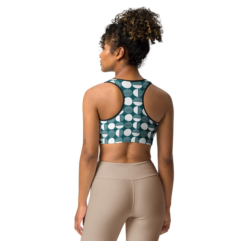 This gorgeous sports bra is made from moisture-wicking material that stays dry during low and medium intensity workouts. The bra has support material in the shoulder straps, double layer front, and a wide elastic band to ensure constant support.