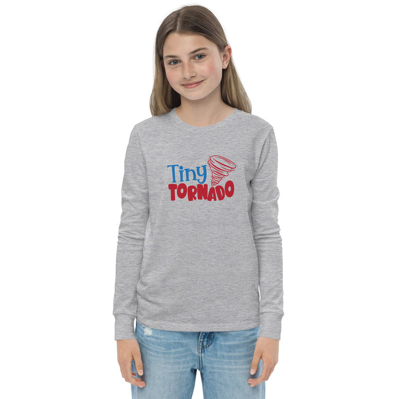 The Youth Long Sleeve Shirt is made of Airlume combed and ringspun cotton, which is known for its softness and durability. The shirt has a regular fit, classic crew neck, and ribbed cuff.