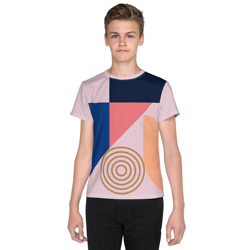 Trapezoid pink lace youth crew neck t-shirt